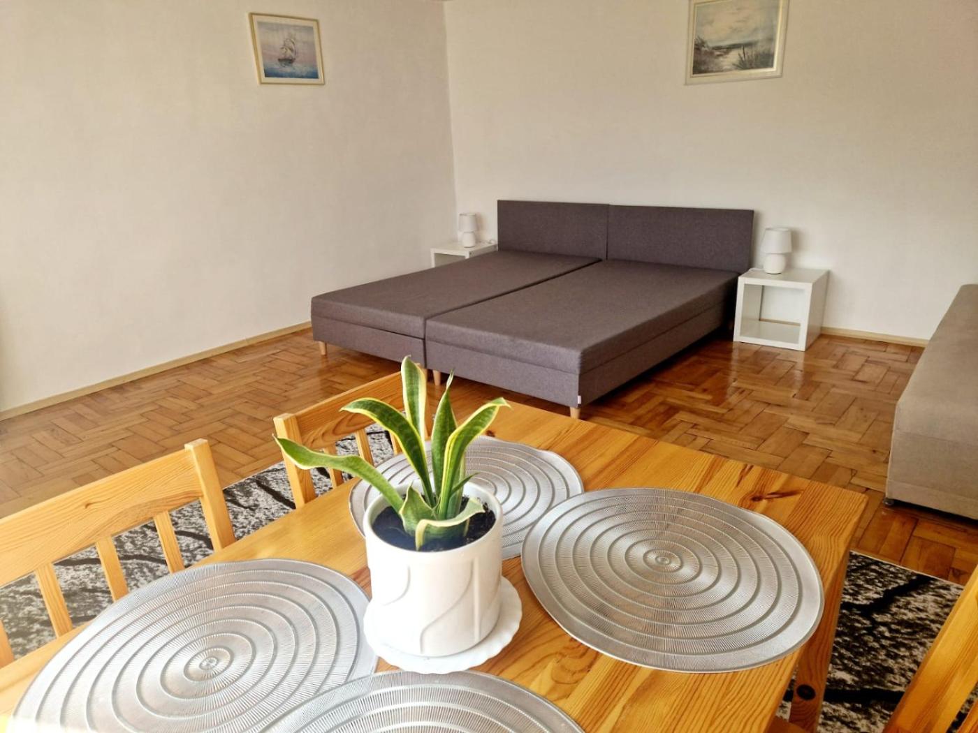 Apartament. Boasting a private entrance, this apartment also comes with 3 separate bedrooms, 1 bathroom with a bath, a kitchen and a dining area. In the well-equipped kitchen, guests will find a refrigerator, a dishwasher, kitchenware and a microwave. The apartment features a wardrobe, an electric kettle, parquet floors, a flat-screen TV, as well as garden views. The unit has 3 beds. Apartament - 6 osobowy. Powierzchnia pokoju ok.: 54 mkw. ;