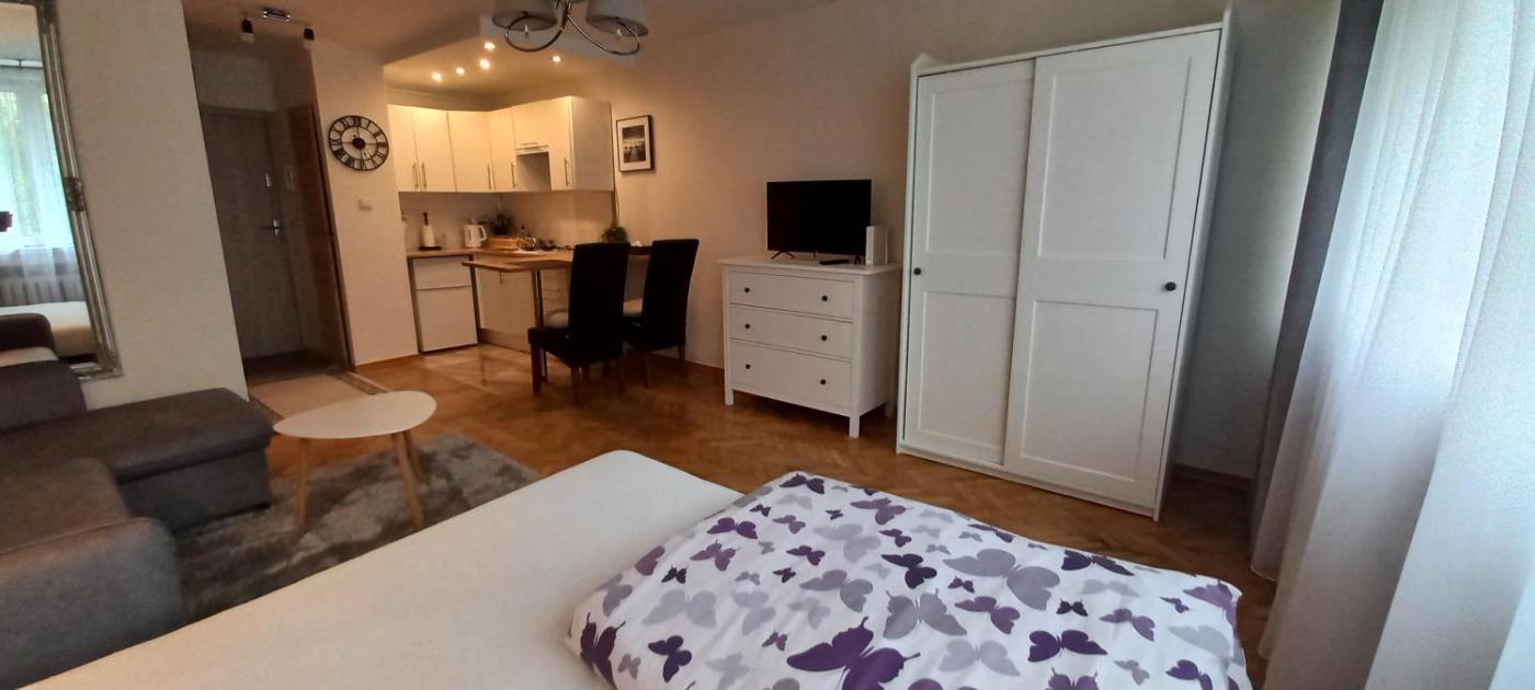 Apartament z 1 sypialnią. Boasting a private entrance, this apartment also comes with 1 bedroom, a seating area and 1 bathroom with a shower and a hairdryer. The well-equipped kitchenette has a stovetop, a refrigerator, kitchenware and a microwave. The apartment features a wardrobe, an electric kettle, parquet floors, a flat-screen TV, as well as garden views. The unit has 2 beds. Apartament - 4 osobowy. Powierzchnia pokoju ok.: 29 mkw.